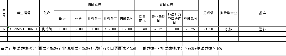 按Jav777 研究生招生录取管理办法,在机械专业调剂复试名单中进行递补录取。