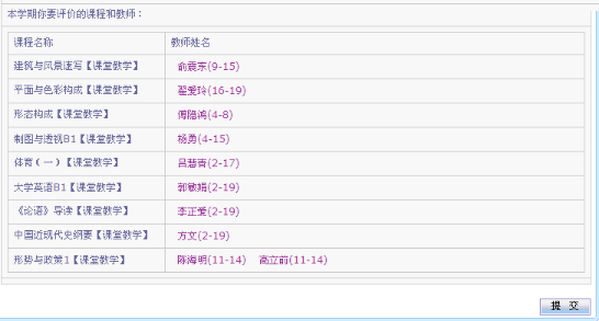 5. 所有教师都评教完后,返回评价主界面点击提交。如下图所示。